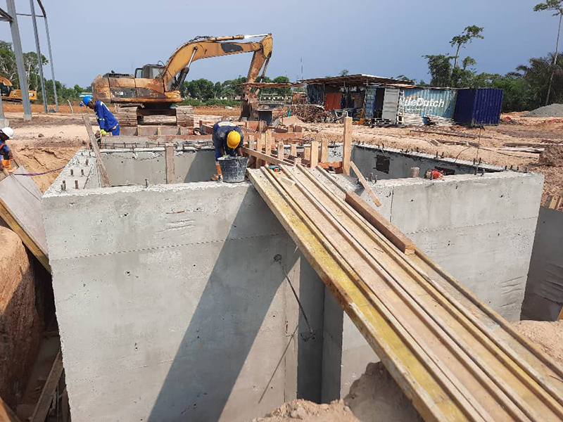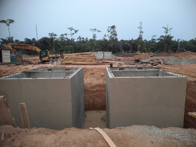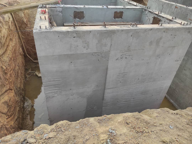 Waterproofing of a reinforced concrete grain storage tank using mineral sealing systems: - External waterproofing with KÖSTER NB Elastic Grey to protect against weather and moisture from soil contact - Internal waterproofing with KÖSTER NB 1 Grey for durable protection under dry storage conditions